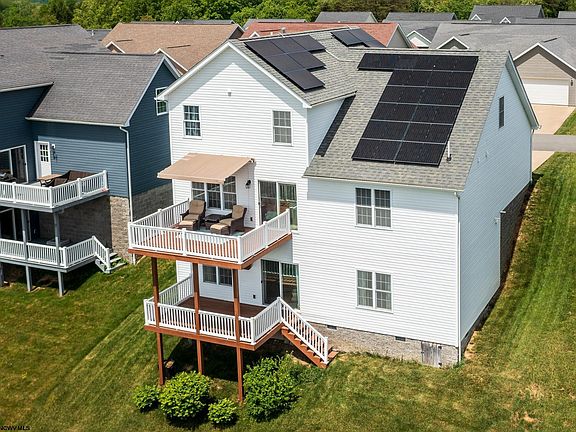 SUNSETS & SOLAR PANELS. This 5 BR & 3.5 BA move-in ready home features hardwoods floors throughout main level, spacious Living Room leads to HUGE deck off offering unparalleled mountain views. Kitchen has SS appliance, sleek granite countertops, gas stove hook-up capabilities + newer dishwasher. Large Primary Suite w/ entry closet + 2x sinks and soaking tub. Take advantage of significant energy savings w/ installed solar panels that will reduce utility bills. A smart investment for long-term savings and a greener lifestyle. Most BRs have entry-closets. Spacious finished LL has huge Gathering Room, Office/5th BR + Full Bathroom + Ample storage space! The sizable unfinished space offers endless possibilities to customize & organize according to your needs.