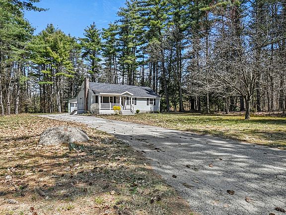 Nestled away from the bustling road, this meticulously maintained 3-bedroom, 1-bathroom ranch eagerly awaits your presence to imbue it with cherished memories. Enter into a sunlit living room adorned with a generous picture window. Adjacent, discover a delightful kitchen boasting ample storage, a cozy dining area, stainless steel appliances, and slider for convenient backyard access. Journey down the hall to find a pristine full bath boasting a double sink vanity and a linen closet, accompanied by three inviting bedrooms. Below, the full basement offers extra storage and laundry facilities. Unwind with a nightcap on the charming covered composite porch or host lively gatherings by the backyard firepit. A spacious Morton 2-car garage stands ready to house your vehicles and recreational gear. Embrace tranquility and seclusion amidst the surrounding trees, ensuring year-round serenity. Just 1/2 mile from Jaffrey town beach located on Contoocook lake!