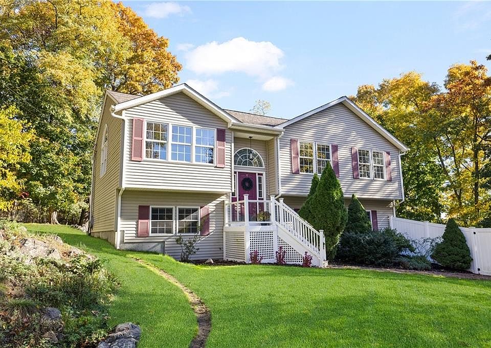 Pride of ownership in this contemporary Raised Ranch situated on a 1 acre lot at the end of a cul de- sac. Offering 3 beds and 2 baths. Kitchen,dining area and living room have cathedral ceilings with sliders to a deck. Primary bedrooms with full bath. Family room in lower level is semi finished. 2 car garage. Bamboo floors in living area. Newer floor, vanity and quartz counter tops in second bath. Newer floors, vanity and granite counter top in primary bath. Granite counter tops in the kitchen. Paradise for dog owners with the entire yard fenced in for off lease enjoyment. Nothing to do but move in.