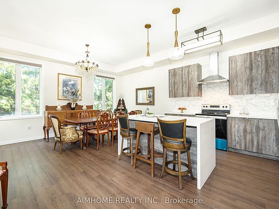 End Unit with Over $150K in Upgrades! Welcome to this luxurious 3-bedroom, 5-bath modern townhouse in the highly sought-after Wismer neighborhood. Owner-occupied and meticulously maintained, this home showcases thoughtful upgrades throughout. A dramatic double-height foyer sets the tone as you step inside. Bright living and dining area offers unobstructed views, while the family room overlooks serene pine trees through double windows. A bonus side window fills the breakfast area with even more natural light. Upgraded chefs kitchen boasts a waterfall island, custom cabinetry, quartz countertops, a stylish range hood, and a striking backsplash. Upstairs, you'll find three spacious bedrooms, including a primary suite with a 5-piece ensuite, walk-in closet, and tranquil views of tall pines that provide both privacy and a cozy atmosphere. Ground-floor great room, enhanced with an added door, can serve as an optional 4th bedroom. Finished basement extends your living space, ideal for entertaining, a home office, or a media room. Additional highlights include upgraded staircases and railings, laminate flooring throughout, premium bathroom hardware, composite deck and landscaped backyard with walkway, electrical outlets, gazebo, and fencing. Perfectly located at 16th Avenue & McCowan Road, just minutes to Markville Mall, GO stations, grocery stores, restaurants, and zoned for the highly regarded Bur Oak High School.