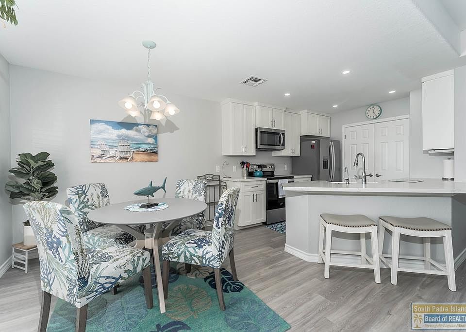 Beautifully updated and tastefully furnished townhome in the desirable SPI Golf Community. This rare find offers modern upgrades & a coastal lifestyle just minutes from South Padre Island beaches. Step inside to an open layout with new luxury vinyl flooring, fresh finishes, and stylish dcor from a local tropical furniture store. The remodeled kitchen features new cabinets, quartz countertops, and stainless steel appliances, while the master suite boasts a fully updated bathroom. Added peace of mind with powered hurricane shutters on dining, living room, & master bedroom windows. Enjoy relaxing afternoons on the screened-in porch overlooking your private green space. Residents have access to resort-style amenities, including pools, tennis, pickleball, a gym, and a clubhouse, as well as community golf and on-site dining. Conveniently located near shopping, entertainment, & major employers like SpaceX and LNG, HEB, this inviting townhome is the perfect coastal retreat! Selling furnished.