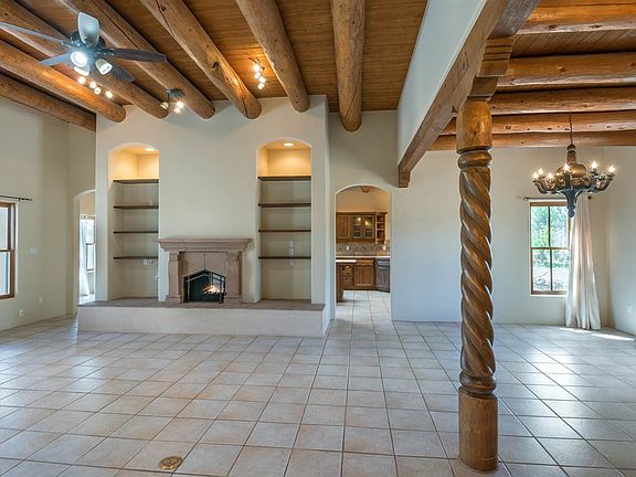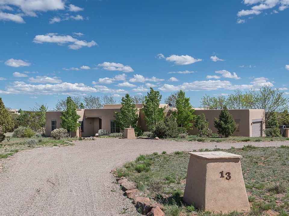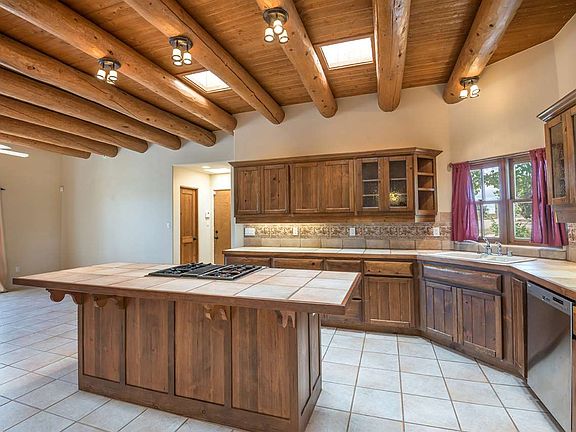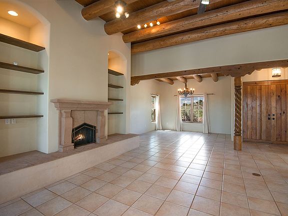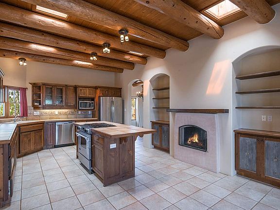 This thoughtfully designed custom home is spectacular, the style is timeless with superb finishes throughout. The front garden extends to all who enter a warm welcome. The home is enveloped in light and comfort, with soaring Viga ceilings in the living area, all tile floors with radiant heat that offer comfy barefoot padding, and a brilliant large fireplace that is shared between the living area and the state-of-the-art kitchen. Which, in any cooks imagination, is spectacular...with a large island, stainless appliances, new refrigerator and tons of cabinet space entertaining here is a wonderful. The floor plan encompasses 3 bedrooms 2 baths at 2222 sq ft. The room are generous in size and offer plenty of room for guests. The master suite has a beautiful master bath and walk in closet. The outdoor spaces provide many areas to rest and relax and totally enjoy what Santa Fe offers...wide night skies and exceptional views. Take time in this delicious space and make it your own.