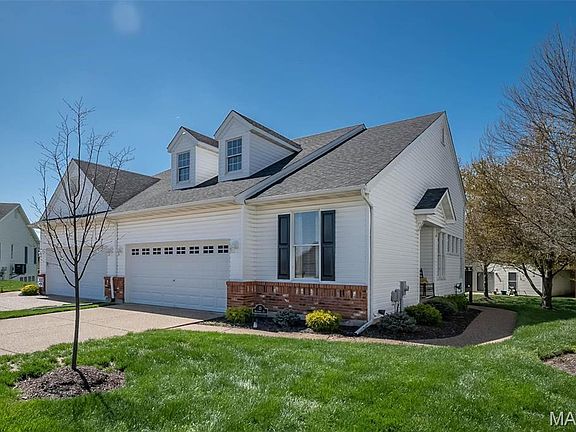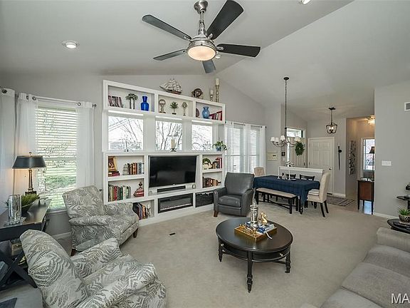 Incredibly maintained former display villa in Ofallon. Walking up to the home you will notice a private corner entrance. Entering this home you will be wowed with luxury. Notice the updated paint and light fixtures. A spacious great room with vaulted ceilings greets you. You will love the stunning wall of windows and built in bookcases. There is a deck off the great room, as well as a dining area. Spacious kitchen offers , 42in cabinets, stainless appliances, and tile backsplash. Primary suite is spacious with a large sitting room attached (was 2 bedrooms converted to one). Suite offers a large walk in closet and double sinks. Your secondary bedroom are spacious as well. Main Floor laundry. Your HOA fee takes care of your landscaping, snow removal of your unit, and do not forget the subdivision pool. Location: Corner Location