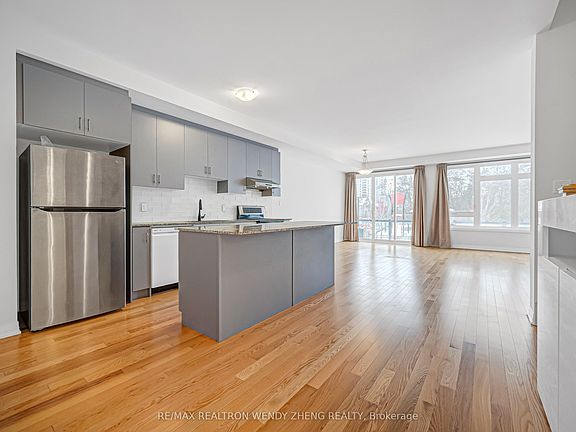 Stylish built modern townhome just steps to the park and go Train Station . Featuring 3 generously sized bedrooms, an open-concept kitchen, and sun-filled living areas with tranquil green-space views. Both levels offer soaring 9-ft ceilings, enhancing the bright and open feel throughout. Contemporary finishes, cross-cut oak floors, and an elegant staircase complement the functional layout-perfect for families and professionals seeking modern living in a highly desirable Markham community. Bur-oak High school.