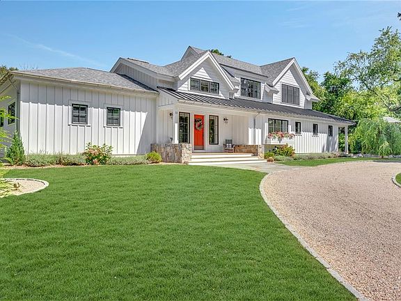 Welcome to this custom-designed board and batten farmhouse with a contemporary edge, blending classic charm with modern elegance. Step through the entryway and into a grand open space featuring soaring cathedral ceilings and a dramatic floor-to-ceiling granite fireplace. The gourmet chef’s kitchen is a true showstopper—complete with an oversized center island, bespoke cabinetry, double ovens, wine fridge, two dishwashers, and a spacious walk-in pantry that also houses an extra refrigerator, laundry area, and built-in workspace. Throughout the home, a mix of warm white oak and sleek concrete flooring provides a seamless balance of comfort and sophistication. The ultra-private first-floor primary suite offers a luxurious escape, with oversized custom closets, heated marble floors, a steam shower, a soaking tub, and direct access to a private patio with a hot tub. Perfect for entertaining, a folding glass wall connects the main living area to an expansive outdoor patio equipped with a built-in grill and pizza oven—blurring the lines between indoor and outdoor living. The second floor offers a versatile study or bedroom, two additional bedrooms, and both a full and a half bath. The basement presents an excellent opportunity for a finished living space. The impeccably landscaped grounds set the stage for an outdoor living experience that feels like a private oasis. This coastal retreat truly offers it all—boating, kayaking, golf, beaches, and dining—all just a stone’s throw away.