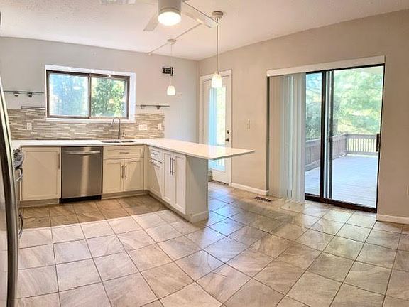 Spacious deckOversized garageLg livingroomBright clean-lined kitchenBreakfast barGround level spaceOpen space concept