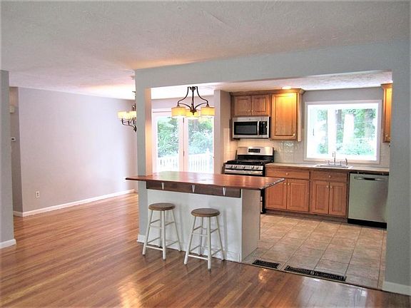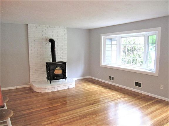 Charming Single Family Home located in a Fantastic North Chelmsford Location!! Situated on a Half Acre Private Wooded Lot and in a Super Quiet Neighborhood. Very convenient to Local Schools, Highways, & Shopping. As you walk in through the front door, there is an Open Concept between kitchen, dining, & living with a working wood burning stove. Sunken family room off kitchen that also leads to the Garage & side entrance. Recently Refinished Gorgeous Hardwood Floors, Central AC, Brand New Stainless Appliances (except fridge), Gas Cooking, Partially Finished Basement that has LOTS of Potential (a second bath, etc. can be easily added), Nice Deck that leads to a Large Private Yard that's perfect space to Spend Time with Family, Friends, & Pets. This would be a Great First Home or someone looking to downsize. Freshly Painted Inside/Out and Ready for Move-In!!