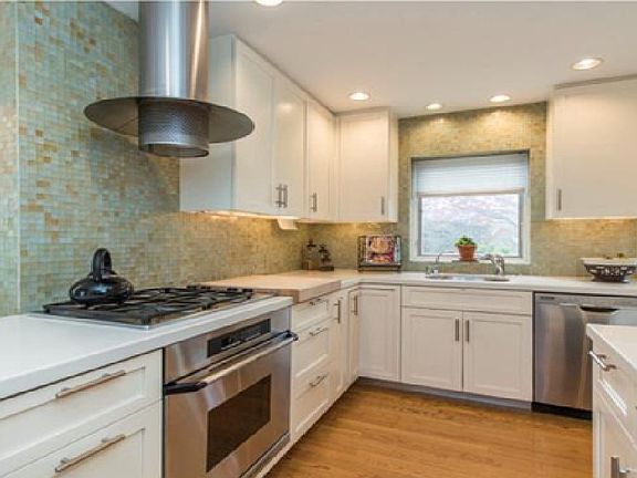 Bright lovely homeHigh-tech exhaust systemLarge picture windowMosaic glass tile backsplashOutdoor stone fireplace grillAsko dishwasherCorian counters