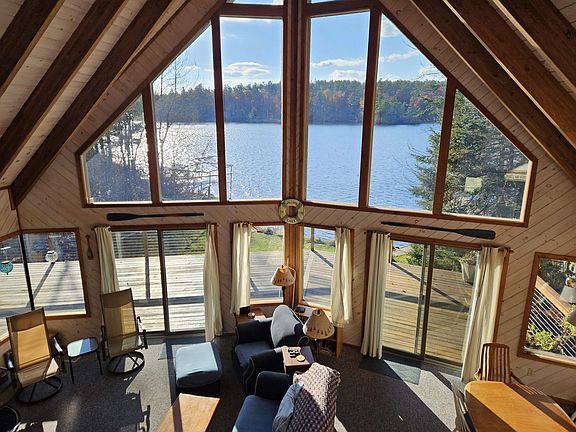 BLACKEY COVE ROAD-PREMIER LOCATION. Don't miss out on the Rare Opportunity to be lucky enough to be able to enjoy Blackey Cove on Lake Winnipesaukee! The home is situated with western exposure for all day sun and beautiful sunsets. One hundred feet of Sandy bottom with deep water. A great U-shaped dock with canopy includes boat lift and as well as two jet ski lifts and a swim raft. The home sits close to the water's edge with floor to ceiling windows. The home has 3+ bedrooms, 4 baths with great space for all. New additions are mini splits for heat and cooling throughout, power awnings on the upper deck and another large deck on the walk out lower level. Heated and insulated two car garage, an awesome bunk house at water's edge , with plenty of screens for the warm summer nights. This location rates a #1 for its location on Blackey Cove , both by boat and car. Close to Center Harbor for shopping and dining. Don't miss this rare opportunity to start making memories at this special spot.