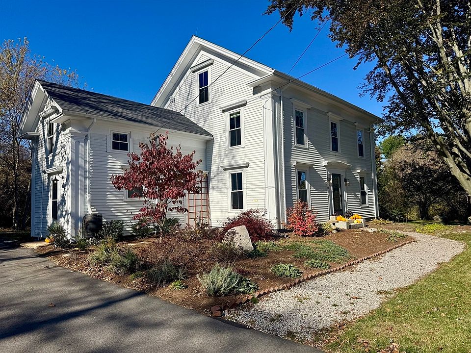 Beautiful and tastefully restored 4-bedroom antique colonial. Historic charm meets modern convenience. The main level features a French country kitchen with a center island, shaker style soft close cabinets, granite counters, huge apron sink, S/S appliances including a gas stove with vent hood & wine fridge - all perfect for entertaining. A light-filled dining room, front-to-back living room with gas f/p,, mudroom with custom built-ins, 1/2 bath with W/D, and a 23’ rear porch complete the 1st level. You'll find 4 generously sized bedrooms and two baths on the second level. The spacious primary bedroom features a modern updated bath and walk-in closet. On the 3rd floor there is a huge 34' bonus room that can serve as an office, workspace, media room, etc. A sweeping main staircase as well as a back staircase adds to the antique flavor. New Roof & Well 2025. Furnace, A/C, Plumbing, Electrical, Septic and Windows replaced in 2019-2020. The backyard is sunny and private.