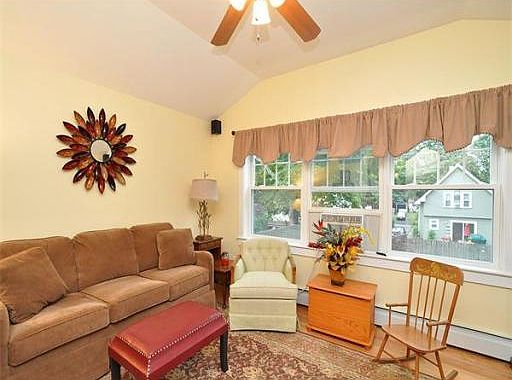 WOW! Don't miss your opportunity to live in a great neighborhood in Stoneham right off of Elm Street near many of the shops and wonderful restaurants. Beautifully maintained 3 bedroom 2 full bath home with Hardwood throughout. Surprisingly much larger than appears from outside. First floor laundry room. Walk in closets in EVERY bedroom. Kitchen updated. All electrical updated. New composite deck. Addition added with family room, laundry and full bath on main level. Beautiful large flat yard with Sprinkler system and professional landscaping. New oil tank. ...Too many updates to list. Nothing to do but move right into this stunning home. Walking distance to commuter rail and easily accessible to major roads and highways. Only 11 miles outside of Boston.