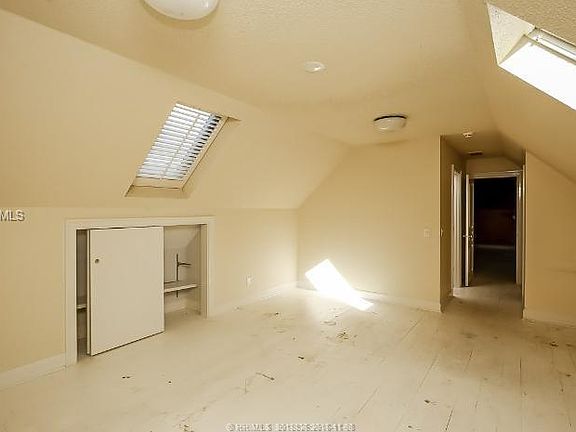 This is a unique opportunity. Over 5,600 sq feet of living space on a wonderful lot overlooking the Spanish Wells Golf Course across a lagoon. Very private. Ideal for back yard sports and entertaining. There is a large screened porch with fireplace. It is accessible from the living room, family room and master bedroom. There are several bonus rooms that can be game or hobby, an office, media room, playroom or a place to get away. The home is in need of updating and repairs but can become a wonderful place to call home.