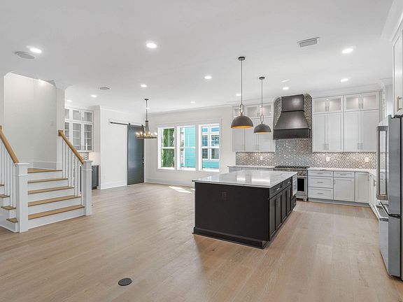 - Breakfast Bar, Crown Molding, High Ceilings, Kitchen Island, Recessed Lighting, Newly Painted, Owner's Closet, Pantry, Shelving, Split Bedroom, Wet Bar, Woodwork Painted, Bedroom, Dining Area, Great Room, Kitchen, Master Bathroom, Master Bedroom