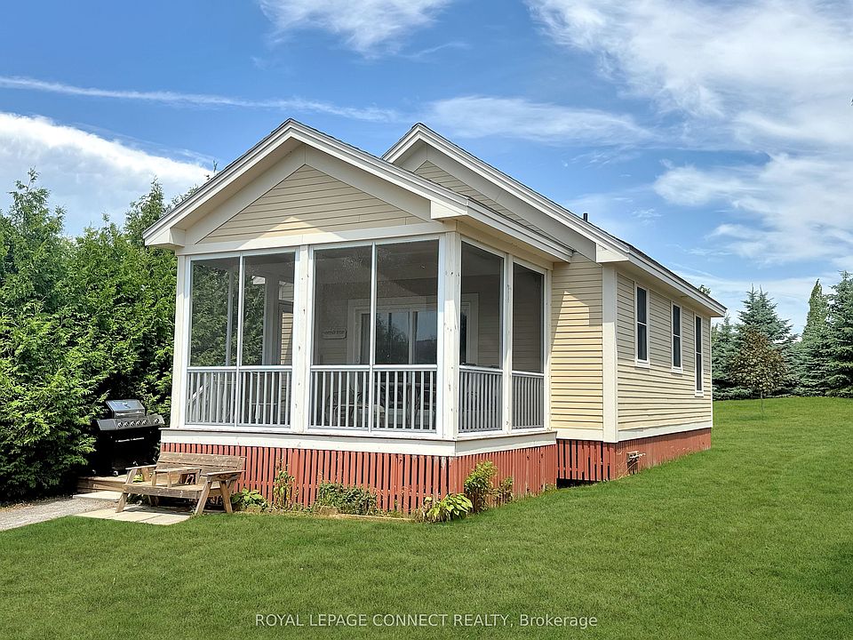 Welcome to 13 Butternut Lane at East Lake Shores, a charming and affordable 2-bedroom Cherry Valley model cottage, fully furnished and move-in ready. Located in The Meadows, a family-friendly pocket of this vibrant seasonal resort community (open April through October), the cottage is just a 1-minute walk to the family pool, tennis and basketball courts, playground, and event pavilion, and only a 10-minute walk to the waterfront. Enjoy sunny afternoons and relaxed evenings on the southwest-facing screened-in porch, with plenty of room for both dining and lounging. The cottage overlooks a beautifully landscaped pocket park with a community fire pit and space to play. It offers excellent privacy with no rear neighbours, a cedar privacy hedge, and adjacent parking for added convenience. East Lake Shores is a gated, family and pet-friendly condominium resort with 237 cottages on 80 acres and 1,500 feet of shoreline on East Lake. It offers a welcoming, low-maintenance lifestyle and a strong sense of community. For those interested in generating income, owners may rent their cottage privately or take advantage of the on-site professionally managed rental program, making it an excellent option for both personal enjoyment and investment. Owners enjoy access to extensive amenities, including: two heated pools, tennis, basketball, bocce & shuffleboard courts, gym, playground, hiking trails, an off-leash dog park, canoes, kayaks & paddleboards, lakeside patio, beach volleyball, owner's lodge with pop-up dining events. Cottages are freehold within a vacant land condo, meaning you own your cottage and lot, plus a share of the common elements. Monthly condo fees of $669.70 include: high-speed internet & TV, lawn care & landscaping, use of all amenities, professional management, water and sewer. With activities like Pickleball, Aqua fit, Yoga, Pilates, live music, and movie nights, there's something for everyone! Or simply relax and enjoy the peaceful setting.