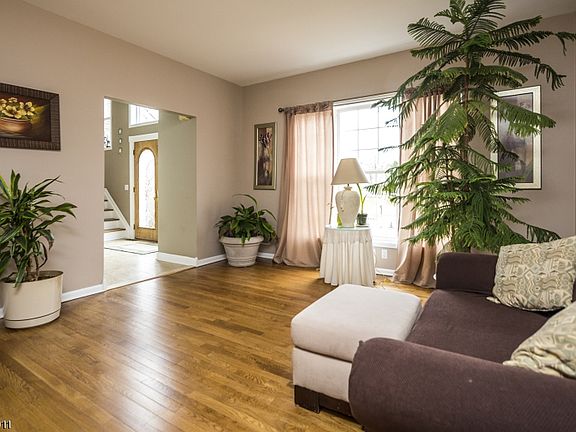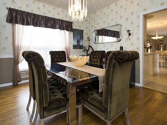 Hardwood flooring was recently refinished, tile, and carpet are in all the right places. Eat in Kitchen featuring new SS appliances, quartz countertops with tile backsplash & recessed lighting