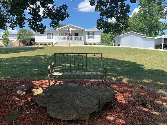 Spacious 3 bedroom, 2 bath Palm, Harbor Elegance 28x48 ft doublewide home on a large .83-acre fenced lot with circular driveway located just off of Browns Bridge Road. Enjoy the rocking chair front porch, living room with vaulted ceiling and gas fireplace. Split bedroom plan. Master suite has an adjoining bath with walk-in closet, double vanities, walk-in shower, and garden tub. Kitchen with smooth surface Frigidaire range, dishwasher, and side by side refrigerator. Double carport, 3 storage buildings, camper or boat storage, wheelchair ramp, plus lean to covered brick patio.