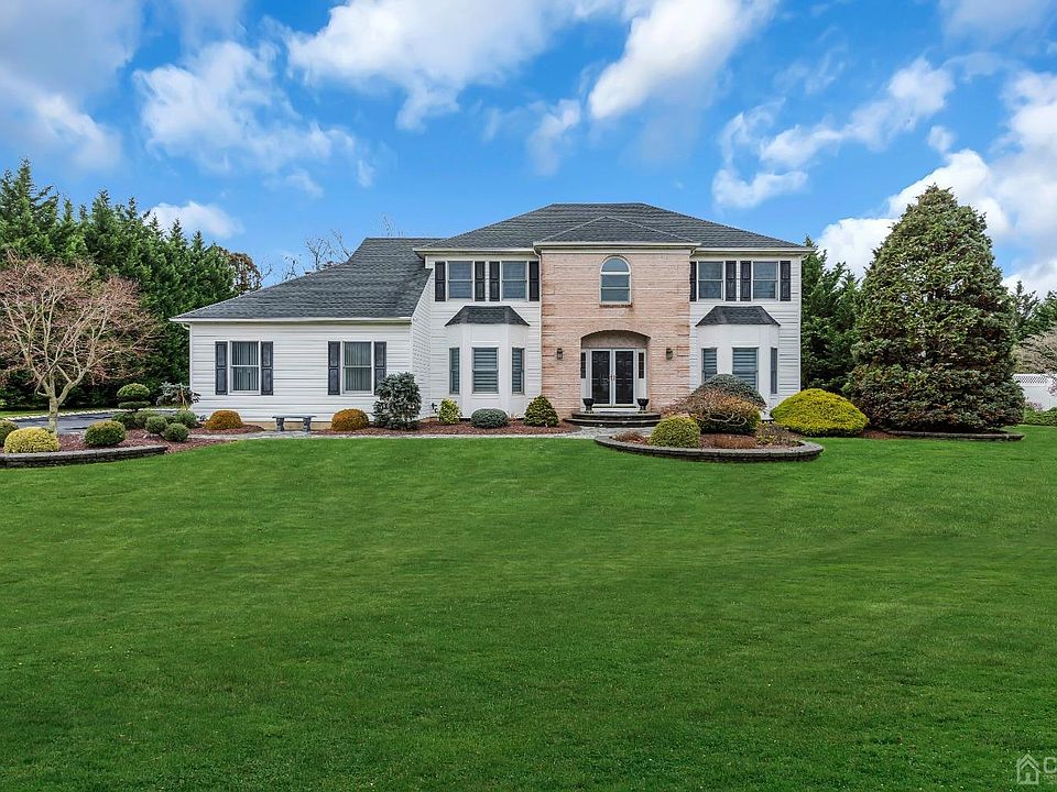 Meticulously maintained center hall colonial located in the desirable Bright Meadow Estates community of Monroe Township. The home features 5 bedrooms, 3 full baths, full basement, 2 car side entry garage and upgrades galore! Curb appeal begins with mature landscaping and paver lit walkway leading to welcoming front steps and double doors. The inviting foyer with elegant molding and twin coat closets is flanked by the formal living and dining room ideal for entertaining. The spacious eat in kitchen with breakfast area, offers ample counter and cabinet space, with white oak kitchen cabinets, stainless steel appliances, granite countertops, recessed lighting, ceramic tile flooring and overlooks the large Trex deck, a great place to host outdoor dining or to enjoy the tranquility of your surroundings. An inviting family room is sure to become a favorite gathering spot and offers recessed lights and large windows overlooking the spacious backyard. A first-floor bedroom on the main level is adjacent to the renovated main floor full bath, perfect for housing guests. The second floor reveals the primary bedroom with a large sitting room, two closets, and a renovated en-suite bath with an oversized stall shower and dual vanities. Three additional bedrooms and renovated full hall bath complete the second floor. If you desire more living space, there is a full unfinished basement with 12' coarse ceiling. The home offers multi zone heating and cooling, and a 12-zone sprinkler system. Additional upgrades include-2023 renovated primary bathroom, 2019 renovated upstairs and downstairs full baths, 2019-new roof, Trex deck, water heater, and entire home painted.