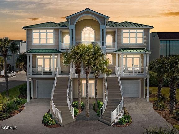 Discover the epitome of coastal luxury at 13 Coggeshall Drive Ocean Isle Beach - a premier property that promises an exclusive blend of elegance & tranquility. This exquisite 6 bedroom, each with an ensuite bath, home offers an unparalleled living experience, steps away from the soft sands and serene waves of Ocean Isle Beach. From the moment you step through the palatial entrance of this 5,200 sqft masterpiece, you are greeted with the warmth of white pine floors that lead you through a thoughtfully designed layout. In the grand foyer, a double staircase set paints a tone of sophistication and grandeur, guiding you to expansive living spaces filled with natural light and breathtaking ocean views and absolutely endless views over Old Sound Creek, the salt marsh and as far as the Intracoastal Waterway.