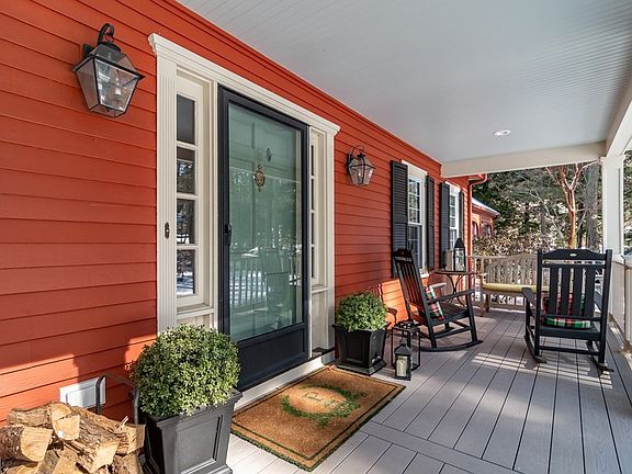 Just what you're looking for, tradition at its best with a fabulous farmers porch. A one acre sanctuary with privacy and nature. This 4 bedroom colonial has hardwood floors, large rooms, finished basement, lots of storage, an outside shed and even outdoor shower overlooking stunning backyard. Large kitchen with island and bar counter opens to sunroom and formal dining. Front to back living room fireplace and picture window. Den has custom built-ins and overlooks the backyard. Primary ensuite on second floor accompanied by 3 bedrooms (one has the w/d in the closet) plus hall bath. Lower level is light and bright with a large picture window, fireplace, separate office/playroom and ample storage with a workshop area. The attached 2 car garage has a loft for storage. Separate outdoor shed for sundries. Backyard patio, pond, waterfall and gardens to adore while bird watching. Desirable location. Highly rated school system.