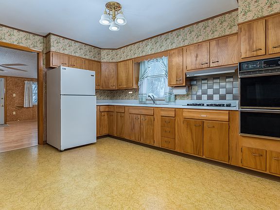 The main level includes bright living spaces, hardwood floors, and plenty of natural light. The large sunroom/bonus room offers flexible use as a family room, playroom, hobby space, or second living area. A generously sized kitchen provides abundant cabinet storage, vintage charm, and plenty of workspace for cooking and entertaining.