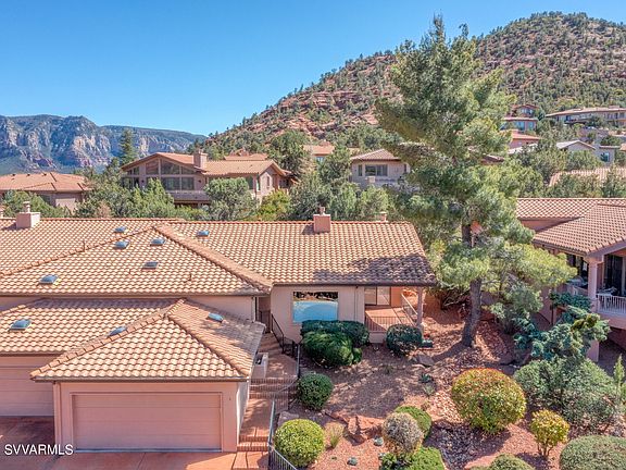Million dollar views of Sedona's famous Red Rocks - Thunder Mountain, Coffee Pot, Chimney, Sugarloaf, etc. Living Room boasts T&G ceilings and a floor-to-ceiling stacked stone fireplace with niches for artwork. Kitchen has stainless steel appliances and large breakfast bar. Owners favorite feature is the covered patio accessible from the Master Suite and Living Room...the views are second to none! Prime location in West Sedona! Looking for a Sedona getaway, this is a perfect lock 'n leave. Ample space with two bedrooms plus den and incredible storage in multiple closets, laundry room and garage. Resort Living at its finest. The luxury gated community of Les Springs features Clubhouse, Pool, Tennis/Pickleball Courts and maintains landscaping.