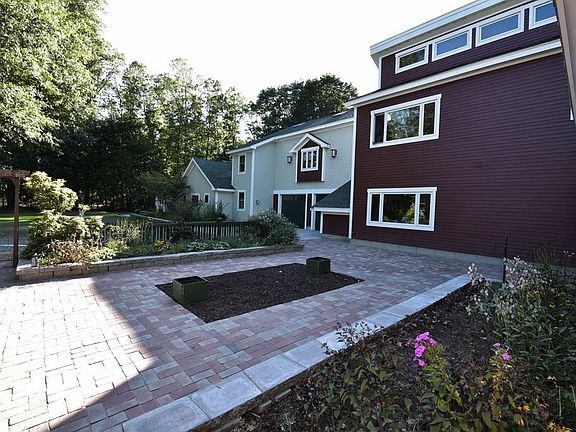This is a great home for an in-house business or hobby enthusiast with a potential in-law apartment. The 2nd floor primary suite and extra bedroom each feature fabulous loft spaces and high ceilings. Main floor has large eat-in kitchen w/bamboo cabinets, a contemporary open floor plan with family and dining rooms that lead to outdoor decks and fenced yards. A large, well lit and high ceilinged bonus space upstairs with great potential for family activities: game room, crafts studio, business offices. Oversized 2 car garage w/built-in storage and workspaces. 2 huge ground floor spaces could be converted for more garages/boat storage. Mini-splits. Two 200A circuit breaker system. Tree fort in the generous back yard w/garden shed. Pole barn w/lots of space to accommodate the established raised garden beds w/built-in watering system. A great entertaining house. Located on a quiet side street a mile from interstate. Great Boxford school system