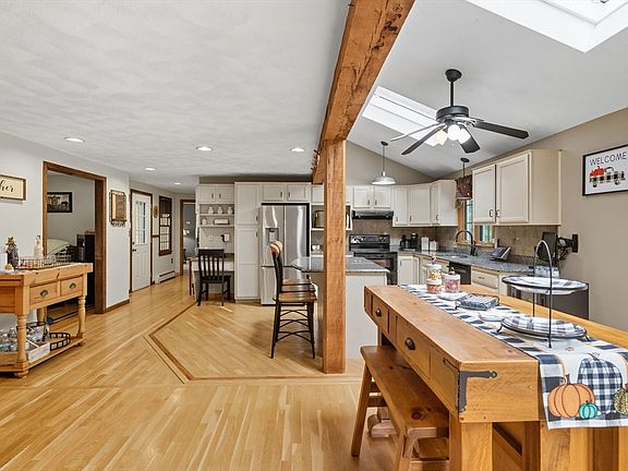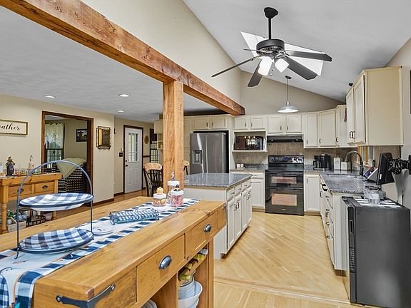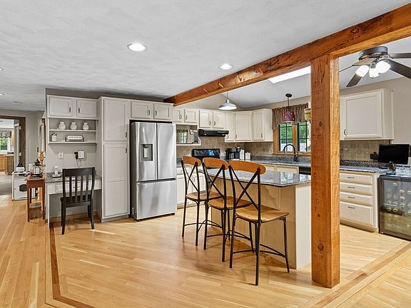 Celebrate the holidays in style with this stunning reproduction center-chimney Colonial in sought-after Crowe Farm Village! Superior craftsmanship, thoughtful design, and fine custom appointments shine throughout this one-of-a-kind home. Main residence offers 3 bedrooms and 2.5 baths, plus a full in-law suite complete with kitchen, family room, bedroom, laundry, & bath. The heart of the home is the expansive kitchen, a warm & inviting gathering space anchored by a center fireplace. Featuring cream-colored cabinetry, granite counters, center island, skylights, & breakfast nook w/ sliders to the deck, it flows seamlessly into the spacious DinRm w/ hardwoods. Main Bedrm w/ en-suite bath, cathedral ceiling, hardwoods. 2 additional bedrms & bath complete the 2nd level. Second staircase off mudroom levels to large Rec room; perfect spot for watching movies or sporting events. Finished lower level w/ kitchen, bar area & game rm. backyard oasis: gunite pool, screened pool house & firepit.