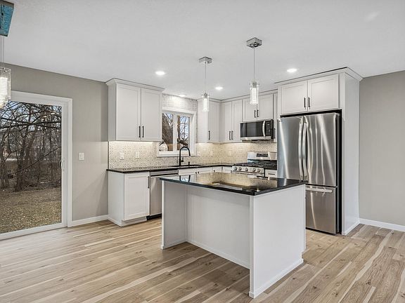 This beautifully renovated home is conveniently located just off Highway 169, close to the Mississippi River in Champlin. It offers a rare 4-car garage, with 2 attached and 2 detached spaces, providing plenty of room for vehicles and storage. The large, flat front and back yards offer endless possibilities for outdoor activities. The entire home has been updated with new siding and windows, enhancing both the aesthetic and energy efficiency. The brand new kitchen features granite countertops, stainless steel appliances, a deep kitchen sink, and soft-close drawers and cabinets, complemented by under-cabinet lighting. The main level is finished with new luxury vinyl plank (Pergo) flooring, while the bedrooms and lower level feature plush new carpeting. All bathrooms have been completely remodeled with granite countertop vanities and beautiful tiled floors. The upper level bathroom includes a luxurious 19" extra-deep tub. The lower level offers a dry bar with a quartz countertop and under-cabinet lighting, perfect for entertaining. Three of the four bedrooms have walk-in closets, and the entire home is wired with CAT5 and coaxial cable in every room for seamless connectivity.