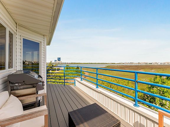 RARE OPPORTUNITY | Endless Waterfront Sunsets | Indulge in opulence daily in this luxurious & completely renovated END UNIT 2-Story Moon Bay Townhome unit offering PANORAMIC views throughout of St. George's Thoroughfare with the AC Skyline as a backdrop. This home is absolutely stunning- no detail unattended including wide plank oak flooring throughout, exquisite brand new Café package in the kitchen w gleaming quartz counters and wine fridge in island. Classic white, navy and gold detail throughout. Offering multiple decks facing the Intracoastal, watch the boats go by under spectacular sunsets, completing another perfect day at the shore. Lounge beside your lavish BAYFRONT POOL, which has been meticulously renovated (2024), providing plenty of seating in sun or shade. Spend your summer swimming and relaxing in the hot tub- or take the short trip to the Cove, the pristine beaches, 18 hole golf course, mini golf, tennis courts, Yacht Club, Swim + Paddle Club, boating, sailing, crabbing, fishing, surfing, jet-skiing and sunbathing- for the full Brigantine experience. This entire home has been professionally decorated and mindfully appointed, with no expense spared. Submerse yourself in the simplicity of timeless luxury at the Shore. Additional Updates from the Seller: AC Unit 2022, Roof 2024 and all 3 decks converted to TREX in 2024- POOL was also renovated in 2024. Strong rental history + potential. PET FRIENDLY!