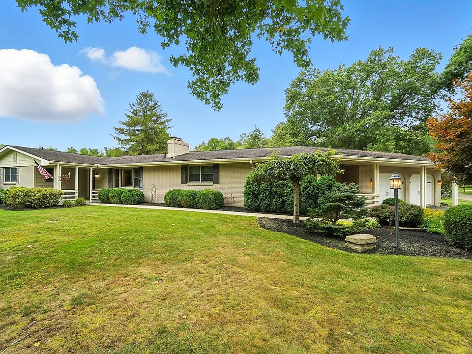 This is a must see impeccable sprawling 5 bdrm, 4 full bath ranch within a whisper of downtown Granville. The first floor has hardwood floors throughout, an updated kitchen w/ SS appliances, 2 potential primaries with ensuite, 2 additional bedrooms, and a 4 seasons room. The basement hosts the coziest family room with a wood-burning fireplace, home bar, and the 5th bedroom (w/ ensuite) has been turned into a movie theater. Outside is ready to host next summers cookout or space to watch the big game al fresco. Pool (currently chlorine but is salt water ready), hot tub, outdoor kitchen and bar, complete with table top gas fire pit.