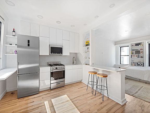 Bright and airy gut renovated studio in the heart of The West Village. Three flights up to this north and south-facing apartment with high ceilings, brand new Chef's Kitchen w/ stainless appliances, hardwood floors, and a newly renovated bathroom. Comes with a private storage unit (8X8) and group bike storage.