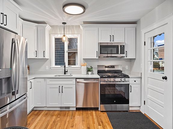 Welcome to 13 Dustin Street! This beautifully renovated single-family home offers 3 spacious bedrooms and 1 modern bathroom, blending comfort and style. The open-concept living and dining areas are bathed in natural light, creating a warm and inviting atmosphere. The updated kitchen is designed for both cooking and entertaining, featuring stainless steel appliances, elegant countertops, and custom cabinetry. Additional upgrades include refinished hardwood floors, fresh interior and exterior paint, and a remodeled bathroom with a new shower, new flooring, and a custom-built entertainment center complete with a 70-inch WiFi TV and an electric fireplace. This home also has a driveway that offers 3 off street parking spaces and a private backyard, perfect for outdoor activities. Situated in a welcoming neighborhood, you'll enjoy convenient access to local amenities, schools, parks, and public transportation. Don’t miss the chance to make this move-in-ready home yours—schedule a showing!