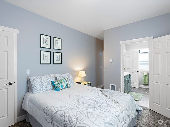 2022 built custom home has a fantastic water view and an unbelievable garage space to store your toys in (4 car garage) High Vaulted ceilings and an amazing deck to take advantage of the view of Case Inlet, Mt Rainier and the local Orcas. Featuring a double primary option with bedrooms & ensuite on both upper and lower levels. Metal Roof, Ductless Mini Split AC, Heat Pump, Quartz Counters, Upgraded Cabinets, Stainless Steel Appliances, Propane Cooking, High quality Blinds installed throughout. Private Lower Deck under construction. Close proximity to highways, major retail centers, while just a 5 min walk to the Allyn Pier to see the Harbor Seals &/or Orcas with your kayak! Potential vacation rental too