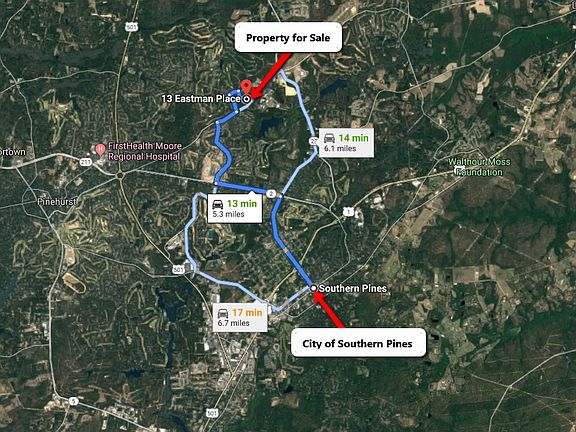 Own this gorgeous 1.12-acre of Raw Land in Moore County, North Carolina. Situated on Eastman Pl just 1.2 miles from Sandhills Community College and 2.5 miles from the Moore County Airport. There are lots of houses in the area that could be your potential neighbors. Pinehurst is the city where it is located. Here in the land of the longleaf pine lie the fabled golf courses of the Pinehurst region. This is where Donald Ross got his start, and where you'll find his legacy alive and well today. A short drive east, celebrate “Freedom’s Home” at visitor-friendly military events and attractions. Come stroll through the gorgeous streets in downtown shopping district, with its many fine restaurants, locally-owned boutiques, and coffee shops. This property is a great spot for you and your family. Call us now to learn more of the offer! Pricing Details: Cash Price: $40,000 Property Details: Parcel #: 857311657487 County: Moore County State: North Carolina Parcel Size: 1.12 Acres Legal Description: FOREST CREEK LOT 1224 SEC 12 GPS Center Coordinates: 35.220622, -79.412527 GPS Coordinates: 35.221032, -79.41282 35.221128, -79.412704 35.220574, -79.411977 35.220163, -79.41266 35.220193, 79.41269 35.220218, -79.412745 35.220215, -79.412794 Elevation: 525 ft Access to Property (Dirt or Paved): Paved Zoning: RS-3 - Residential Single Family 3 Terrain: Flat Time limit to Build: None Tax Amount: $380.00 Back Taxes: None HOA: They Don’t have any idea Water: Would need to dig a water well Sewer: Would need to install septic Power: There’s a power pole approx. 3 min (1.0 mile) away from the property.