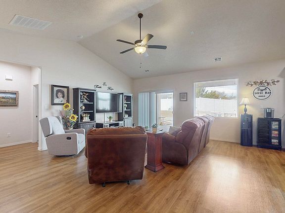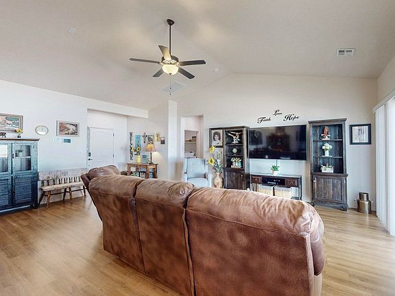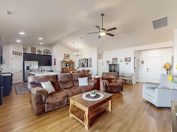Like new 4 year old home minutes from Edgewood, Paved Roads, Completely Landscaped Front and back yards. This home was built in 2021 and it is immaculate. Wonderful open floor plan with Huge Eat in Island and tons of cabinets in the Kitchen. 3 Car garage with lots of storage. Smart Home wired. Washer/Dryer, Hot/cold Drinking water dispenser, water softener and Refrigerator stays with home. Lot has its own walking trail and 8'x12' Storage shed with Ramp. Water Storage Barrells, Backyard privacy with White Vinyl Fencing with two access gates and covered porch. This property is a short distance to 246 acres of BLM Land for hiking or biking. Home has handicap access. Community Water and Septic system.