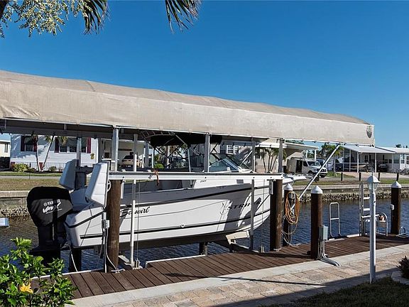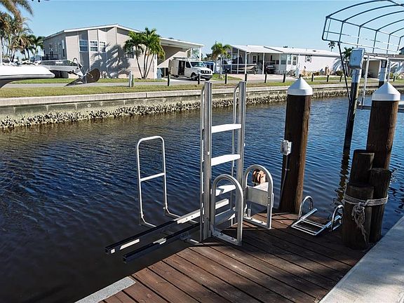 Nestled in the premier 55+ Windmill Village community, this cleared and leveled waterfront lot invites you to craft your ideal manufactured home with unparalleled ease. Boasting a 33'x4' dock equipped with a covered boat lift and kayak lift, plus a stunning paver patio flowing seamlessly to the water’s edge, it’s perfectly poised for relaxed outdoor living and entertaining. A low quarterly HOA fee of just $260 covers water, sewer, trash, lawn care, common areas, and roads—delivering true low-maintenance luxury. Dive into an active lifestyle with two private marinas, a boat ramp, horseshoe pits, shuffleboard, bocce, billiards, indoor pickleball, a vibrant community center, diverse clubs, and The Pavilion beside the heated pool for memorable gatherings. Set in Punta Gorda—named "#1 Best Small Place to Live" by Money Magazine and Forbes—this is waterfront serenity at its finest. Note: Purchase price excludes a $20,285 Buy-In Share and Bond, fully refundable upon resale. Claim this rare gem and build your dream retreat today!