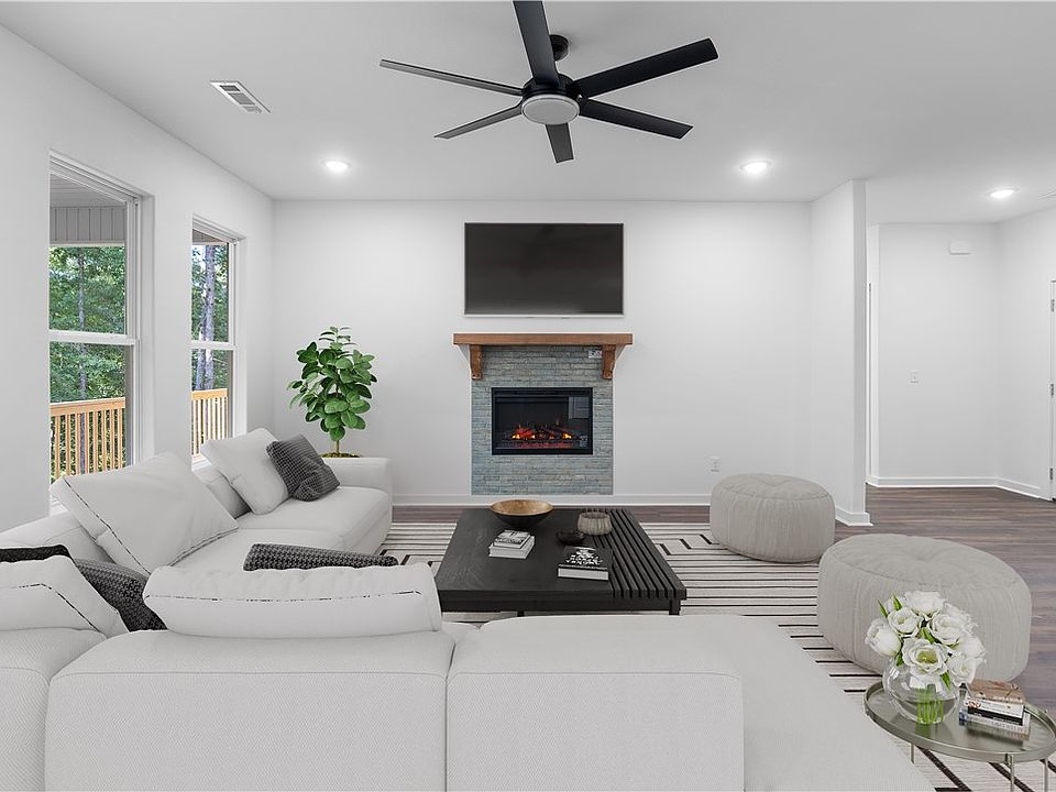 Spacious primary suiteGenerous closet spaceLarge walk-in showerFull size stand-alone tubOpen-concept living spaceQuartz countertopsCovered back porch