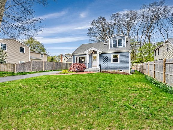 This beautiful 3-bed, 2-bath expanded Cape underwent a 2014 renovation and addition, featuring an updated kitchen which is open to a bright family room and dining space, complete with vaulted ceilings and a fireplace. The first floor also features a living room, spacious home office and full bathroom. Upstairs, you'll find three bedrooms and another bathroom with shower. The lower level includes a finished bonus room with built-in cabinetry and plenty of storage space. Enjoy the private backyard with newer shed and patio, all in a prime neighborhood close to the town center and high school. Welcome home!