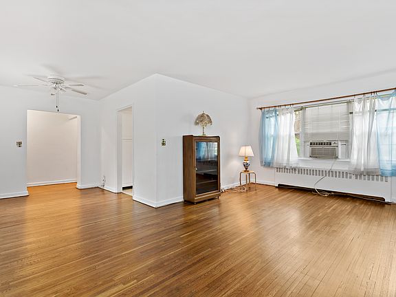 First floor, with a private entrance into this nicely updated Co-op with east and west exposures for maximum sunlight during the day. This unit was just freshly painted and the wood floors were just refinished. In the bedroom, there are two large closets with separate storage closets above. The kitchen has white cabinets and gas cooking and a window overlooking the rear courtyard. The dining area has a window that lets you dine and watch the birds in the trees in the front courtyard. This front courtyard is where you can put your table/chairs and BBQ grille for outdoor dining during the summertime. The bathroom is all white and the linen closet outside the bathroom can be converted into the area for your washer/dryer in the unit. Or you can install the washer/dryer in the kitchen. The common laundry room is in building 9, street-side. There is lots of street parking and there are currently reserved parking spaces available. Enjoy Greenburgh Recreation, nearby shops/restaurants/parks.