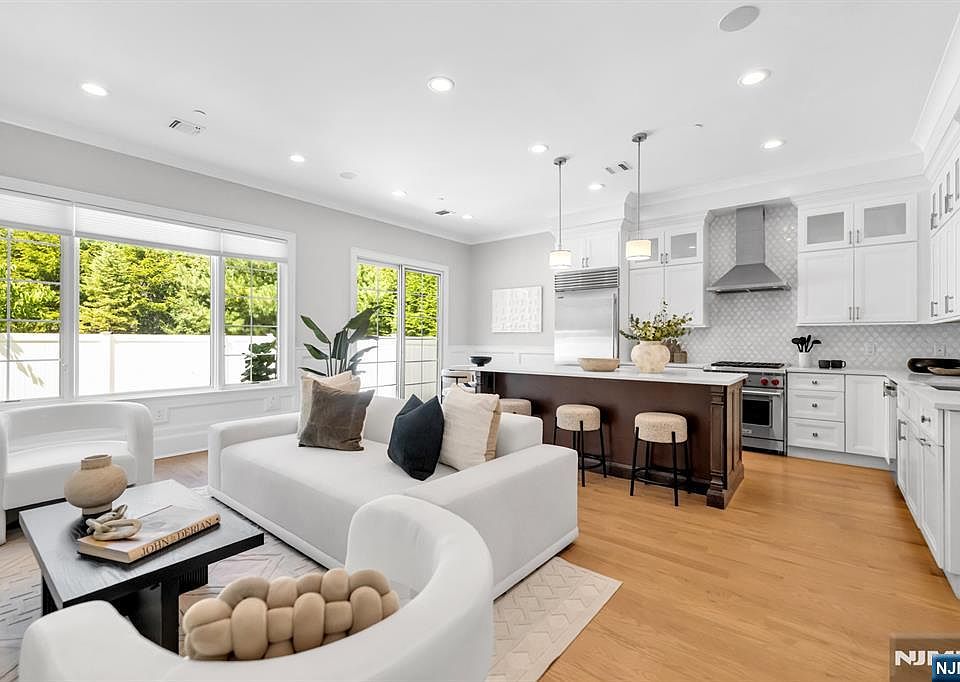 Stunning luxury townhome at Gabriel Estates, a boutique community in the heart of Paramus. Built just a few years ago, this spectacular residence has been fully upgraded with elegant trim and moldings, designer wall coverings, custom cabinetry, and a built-in home office within the primary suite. The home offers 3 bedrooms, 2 full bathrooms, and 2 half bathrooms, featuring soaring 10-ft ceilings on the first floor and 9-ft ceilings upstairs that create an open, airy ambiance. The gourmet chef's kitchen boasts Sub-Zero/Wolf appliances, quartz countertops, and sliding glass doors leading to a private, fenced-in backyard. The impressive primary suite includes a massive walk-in closet and a spa-like bath with a Jacuzzi tub, oversized shower, and double vanity. The fully finished lower level expands the living space with an incredible recreation room and a custom wet bar with beverage center, perfect for entertaining. Enjoy serene outdoor living with a private patio and yard, all while being minutes from the Garden State Parkway, Route 17, world-class shopping (Trader Joe's, Whole Foods, Garden State Plaza, Shake Shack, Container Store, Crate & Barrel, and more), plus access to Paramus' top-rated schools.