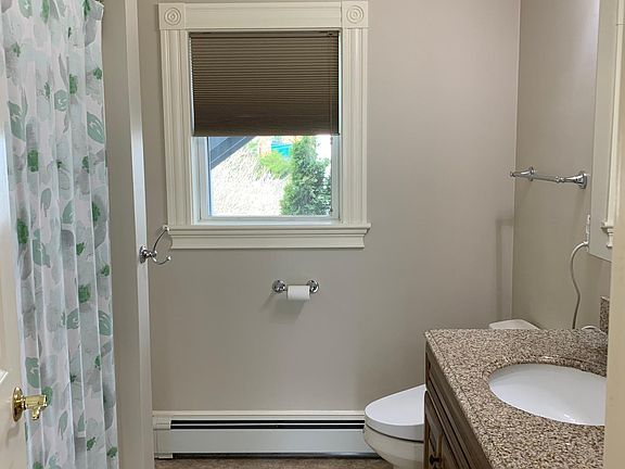 2 bedroom, 1 bath, ~1000 sq. foot apartment on 1st. floor Off-street parking and yard Gas heat, gas hot water Summing up amenities: Side-porch with private entrance Bali pleated insulating blinds in all windows Granite counters in kitchen, bath Stainless appliances, gas stove (vented hood), microwave, dishwasher, fridge Garbage disposal, double stainless sink Maple kitchen cabinets Large pantry with built-in shelves and washer/dryer Carpets, laminate floors 3 ceiling fans, with lights (both bedrooms, and living room) Electric fireplace including stone enclosure, and wood mantle in living room Wall mount for TV in Living Room Closets in both bedrooms, linen closet in bathroom, closet in front hall, and closet near the side entrance. Access to the basement for storage. The owner also provides landscaping. No smoking or pets please. Please apply for the apartment through Zillow. Owner pays for water. Renter is responsible for electricity and gas.