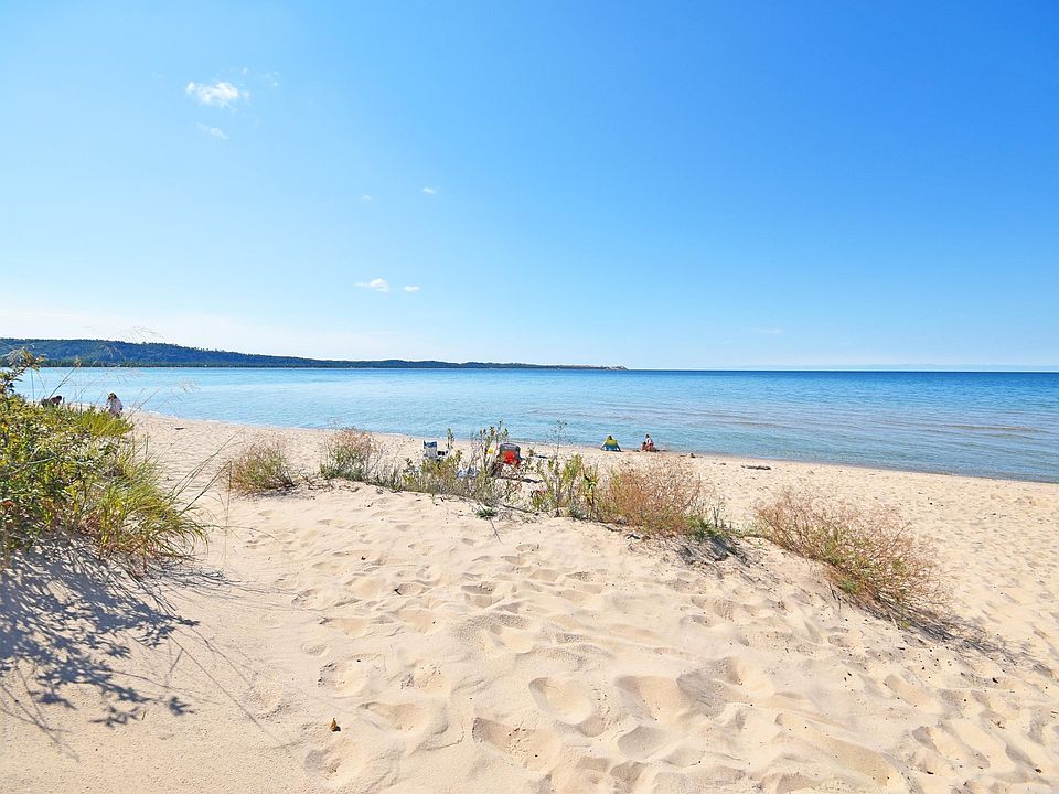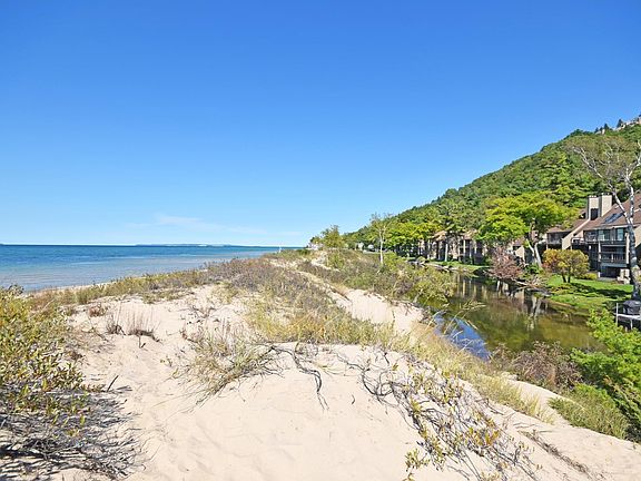 Whole ownership. Beachy, charming, fully updated, and nicely appointed mid-level two bedroom/two bath waterfront condo with views of the Crystal River, Lake Michigan, and the Manitou Islands. This remodeled space boasts a completely new kitchen (as well as a new, open kitchen layout), flooring, paint, master bath, added washer and dryer, glass shower doors in the second bathroom, stacked stone fireplace, and more). Enjoy the decks during the summer and the wood burning fireplace in the winter. Great Lakes 13/14 has a very limited amount of steps to its door (10 gradual steps, to be exact), parking directly in front of the building, laundry in-condo, kayak storage outside the building, and breathtaking, west facing sunset views. Drift down the river in to Lake Michigan, run the Sleeping Bear Dunes (only 5 minutes away) and build memories to last a lifetime! Purchase your piece of paradise just in time to enjoy most of summer! Being sold furnished with some exceptions.