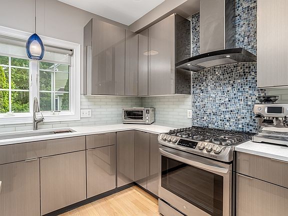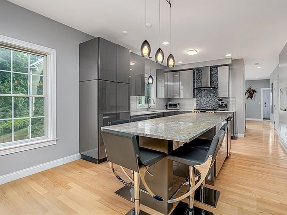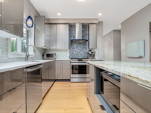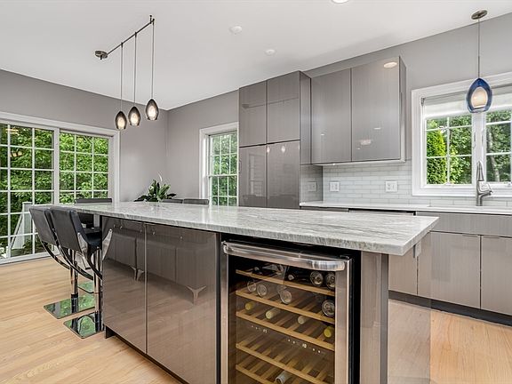 Tucked on a desirable cul-de-sac, this eco friendly home is thoughtfully upgraded and blends timeless design with modern efficiency. The Stunning European-style kitchen features 10 Ft. quartzite island, custom pull-out pantry drawers & smart storage throughout. The main level primary suite offers a spa-inspired Kohler bath with marble tile, designer accents and jet-enhanced glass shower. The repolished oak floors flow across the main level with premium white oak upstairs. Living room has beautiful floor to ceiling quartz/gas fireplace. Enjoy year round comfort w/brand new high efficiency heat pumps serving main & second floor, plus a separate system for the finished LL with marble "kitchenette" & H/W floors with flexible layout (gym, media room). There are 4 full baths & 1 half, separate laundry room & W/O lower level has daylight windows & nice lawn, yard & stone patio. Move-in ready luxury! AND in-law potential!