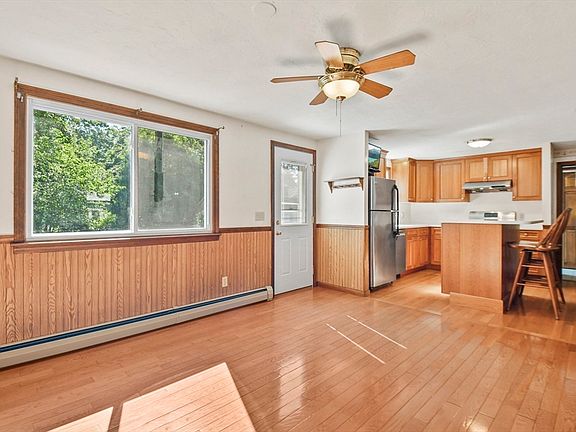 Nestled on a dead-end street in the town of Grafton, this delightful Cape home with a new roof (2023) is waiting for you! Enter to an inviting open concept living room, dining room, and kitchen area, all with beautiful hardwood floors. The living room features a cozy pellet stove, ideal for those chilly New England evenings! Outfitted with stainless steel appliances, the updated kitchen also boasts a spacious island & Corian counter tops! The first-floor primary bedroom and a convenient full bath with laundry facilities completes the first level. Upstairs, you'll find an additional bedroom and a partially finished room, offering endless possibilities for customization to suit your needs. The lower level includes a versatile bonus room, a 1/2 bathroom, and a workshop area in the unfinished section, perfect for hobbies or storage. Outside, relax on the charming front farmer's porch or enjoy the yard - complete with a storage shed and a back deck for entertaining.