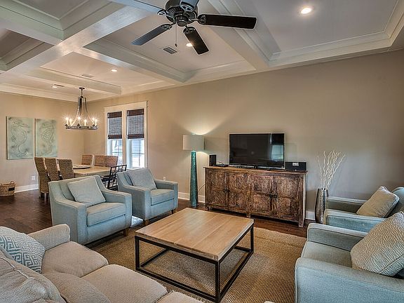 Greenway Loop is an upscale 4-bedroom home with accommodations for 8. It is designed for relaxation and located in the popular community of Seacrest Beach on beautiful Highway 30A. Luxury details include 10’ ceilings, tile and wood floors throughout, designer furnishings, new comfortable mattresses, and an outdoor shower. The downstairs king bedroom is conveniently located off the foyer, and has access to a charming hall bath. The spacious living area along the rear of the home allows easy access to the screened balcony with bed swing, dining table, and green space views beyond. A large flat screen TV provides family entertainment for relaxing after a day of fun in the sun. The open and inviting kitchen is a chef's delight with custom cabinets, granite countertops, and stainless applianc The large kitchen island provides ample space for prepping delicious meals and additional seating at the bar. The dining room table seats 8 comfortably. Upstairs are 3 more bedrooms, including a roomy master with king bed and private access to a screened balcony. Its luxurious bath has a large, tiled walk-in shower and separate soaking tub. The master bathroom also has double vanities. The 2nd upstairs bedroom has two twin beds plus private access to a large hall bath. The bunkroom has a twin/twin bunk and access to the guest bathroom. All bedrooms have flat screen TV's and spacious closets. Tucked away in a great location, this home offers privacy while still providing easy access to the Emerald Coast's most beautiful beaches, the 12,000 sq ft Lagoon Pool, and the new shops of Seacrest Beach!