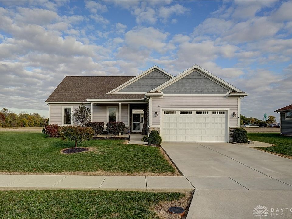 Welcome to a home that invites warmth, connection, and everyday comfort! Step inside and you’ll instantly feel the charm of this open floor plan, where the great room and cozy gas fireplace create the perfect gathering space. The kitchen is designed for both style and function, featuring soft-close cabinetry, granite countertops, a spacious island with butcher block top, and a 7x4 walk-in pantry. All kitchen appliances stay! Soaring 10’ ceilings, rich wood floors, and soft neutral finishes flow throughout. The owner’s suite offers double walk-in closets and a relaxing bath with both shower and soaking tub. From the dining area, step out to a private fenced patio—ideal for outdoor meals or play—complete with a stone walkway leading to the greenhouse and shed. Extras include wood blinds and drapes, an ADT security system with smoke and glass break detectors, and a 2-car attached garage. A true blend of comfort, convenience, and timeless style!