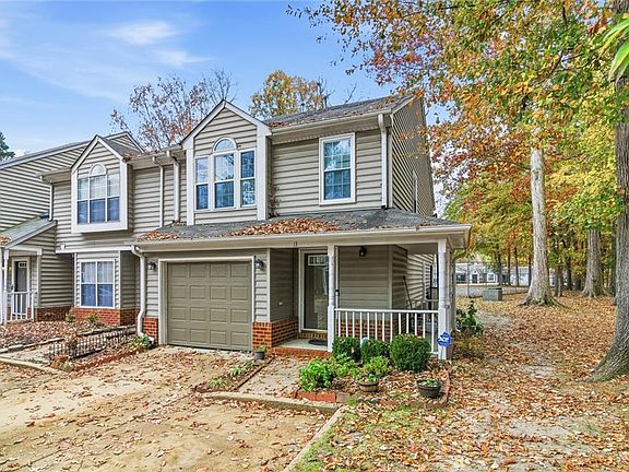 Welcome to Hampton Woods, you will fall in love with this end unit townhome with wrap around porch, new paint, new carpet, new water heater, roof and windows less than 10 years young, Gas fireplace in large living room, formal dining room, nice size primary bedroom with walk in closet. You will love the easy access to the interstate and all your entertainment needs. All you have to do is pick up the key and move right in. Carpet and paint will be completed prior to closing) (old water stains in upstairs hall, water heater has been replaced)