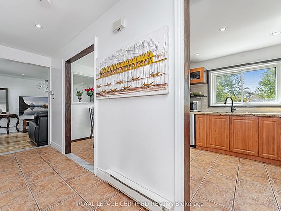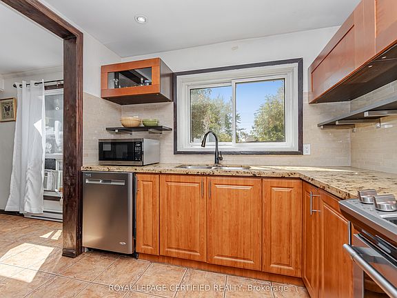 This affordable detached family residence presents a harmonious blend of modern updates and functional design. Featuring four bedrooms, two bathrooms, and a finished lower level, the home is move-in ready with all doors and windows replaced on both the main and upper levels. The bright open-concept living room showcases hardwood flooring, bay window and offers walk-out access to a fenced rear yard and covered patio. The property is carpet-free, with ceramic flooring extending from the entryway into the kitchen. The chefs kitchen stands out with its granite countertops, double undermount sinks, stone backsplash, and stainless steel appliances. A wood staircase with wrought iron spindles leads to an upper level comprising four spacious bedrooms, each equipped with large double closets and hardwood floors. The renovated main bathroom features 12x24 porcelain flooring and tile surround. The finished lower level adds additional living space, a convenient three-piece bath, and a laundry area. Exterior improvements include vinyl siding, eaves, and soffits completed in 2018, a re-shingled roof in 2014, and air conditioning installed in 2020, ensuring ease of maintenance and enhanced comfort.