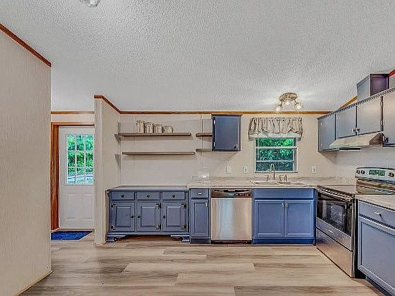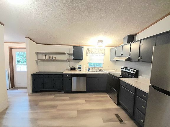 Overhead doorBeautiful lake viewsBathroom vanities and toiletsKitchen cabinets and appliances