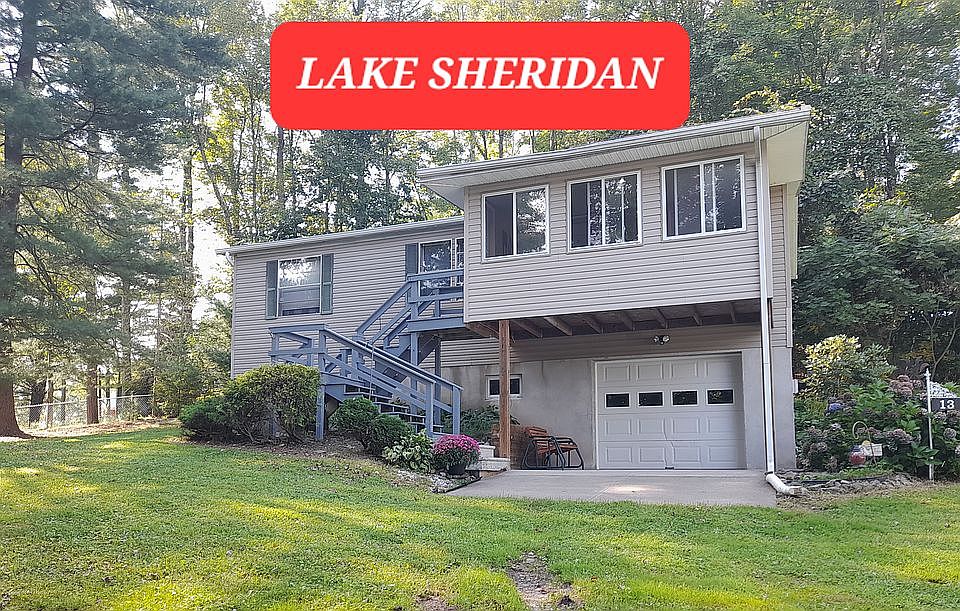 Lake Sheridan year round home w/ Lake rights on approx. 1/2 acre double lot, which can be divided by buyer if desired. Quiet and private location. 3 bedroom, 2 full bathroom, as well as additional 1/2 bathroom in basement. Enjoy beautiful lake views from your enclosed 3 season sunroom. New lifetime laminate flooring throughout. Newly updated kitchen, bathrooms and stainless appliances. All new Gutters. Roof was replaced 3 years ago. 960 Sq. Ft. Finished living space (upstairs), and Large clean and very dry 900 Sq. Ft. basement with overhead door and 10ft. ceiling. Completely rebuilt oil furnace (Forced hot air). Very economical to heat. 2-3 minute walk to Pavillion and lake to enjoy all Lake Sheridan has to offer.